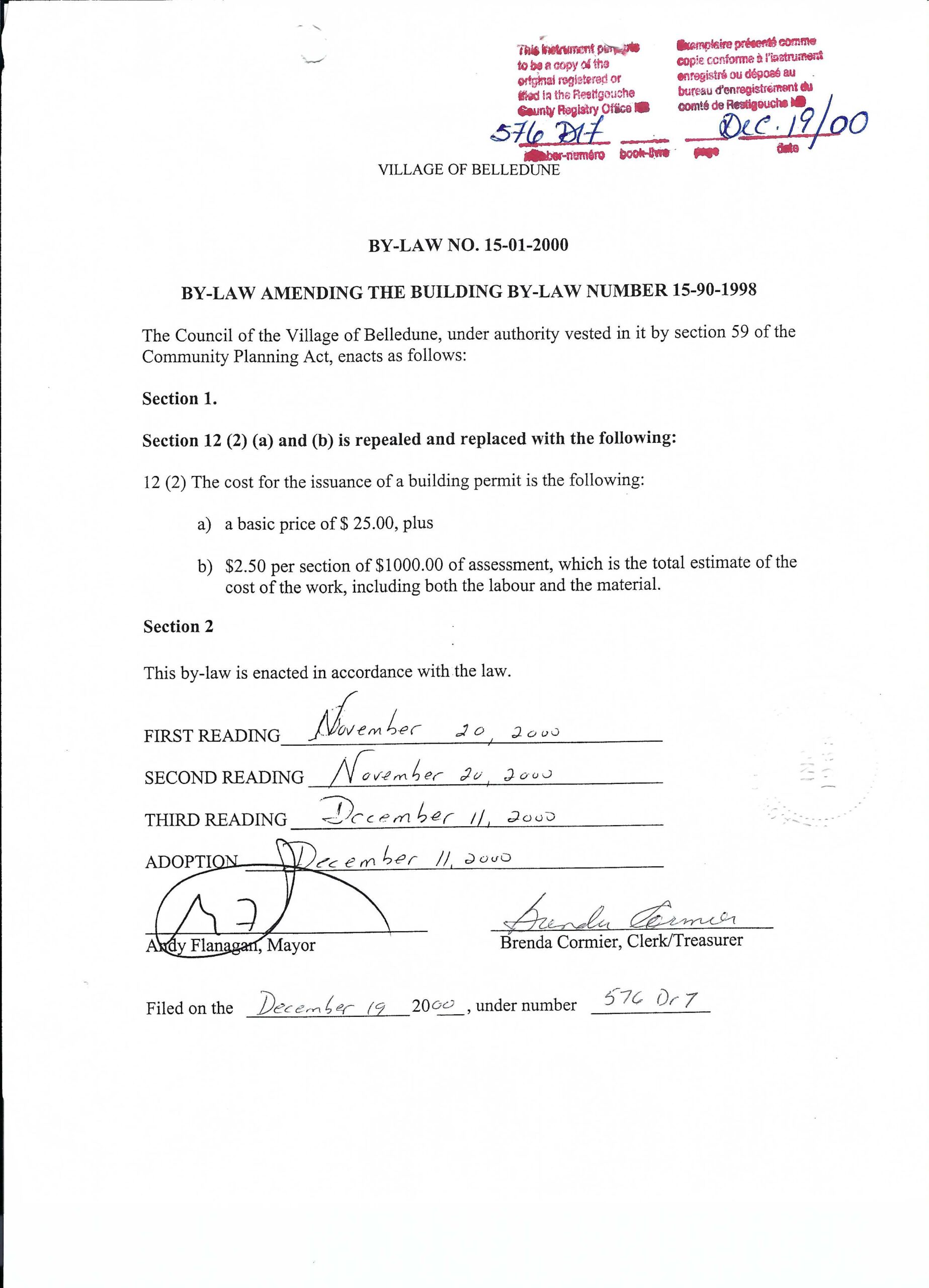 By-law Amendment No. 15-01-2000