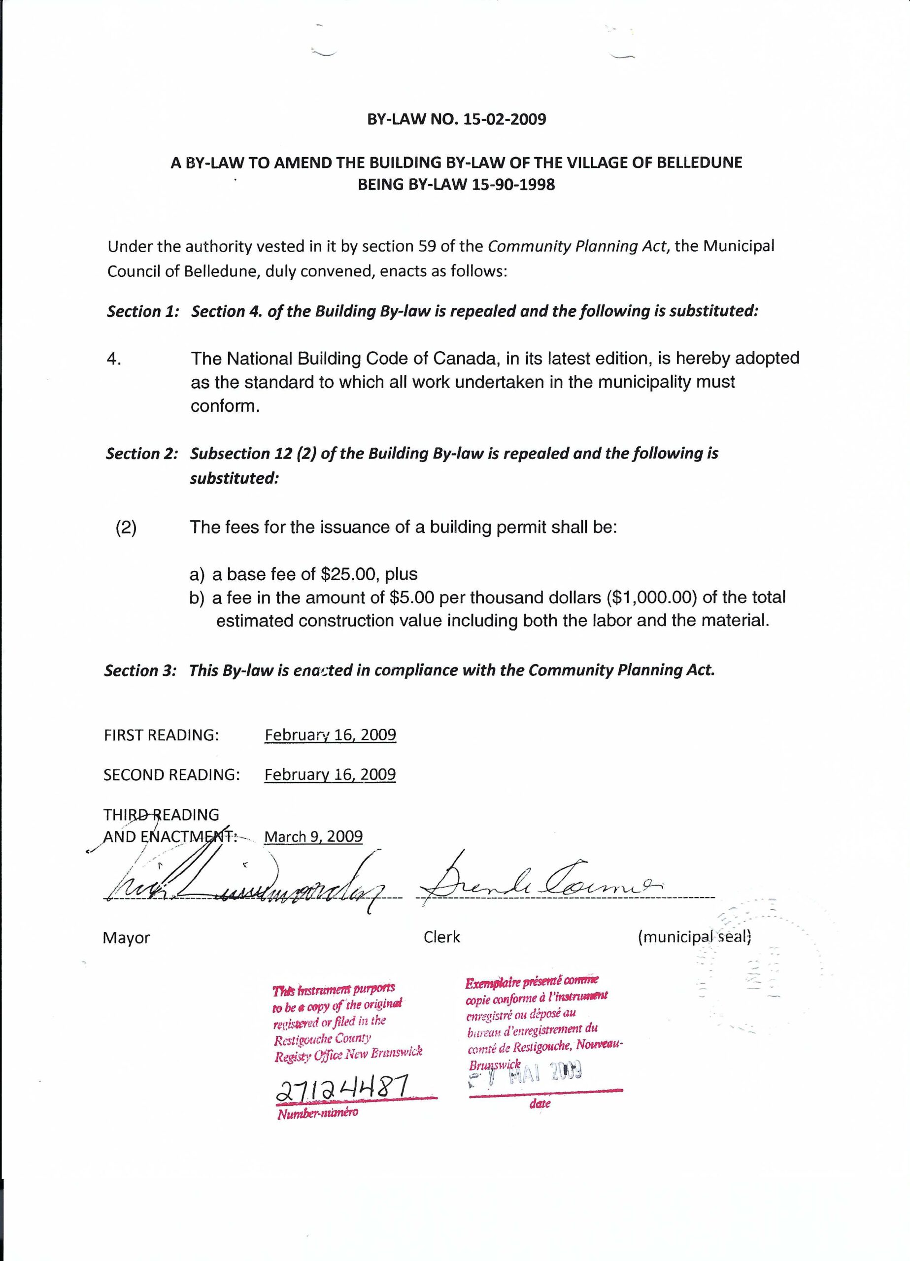 By-law Amendment No. 15-02-2009